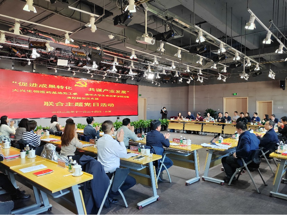 11月24日,清华大学生命科学学院党委教工第一支部、教工第四支部部分教师和学生党员代表前往大兴生物医药产业基地(以下简称“产业基地”),与该产业基地党工委及清控科创党支部开展联合主题党日活动,会议在产业基地创新中心举行。