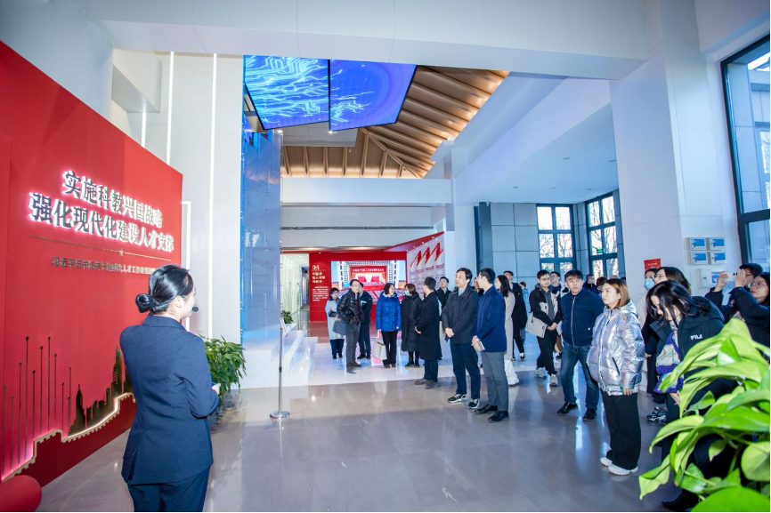 随后,又前往北京市人才文化教育基地参观学习,走过“贯古今、纳百川、新时代、看未来”四大展区,感受“人才主题墙”、 “人才之路”、“人才连廊”、“3D幻影成像”、“魔屏”和 “沉浸式多媒体屋”等场景,深入体会北京市人才文化教育基地“聚天下英才而用之”的深刻主题。