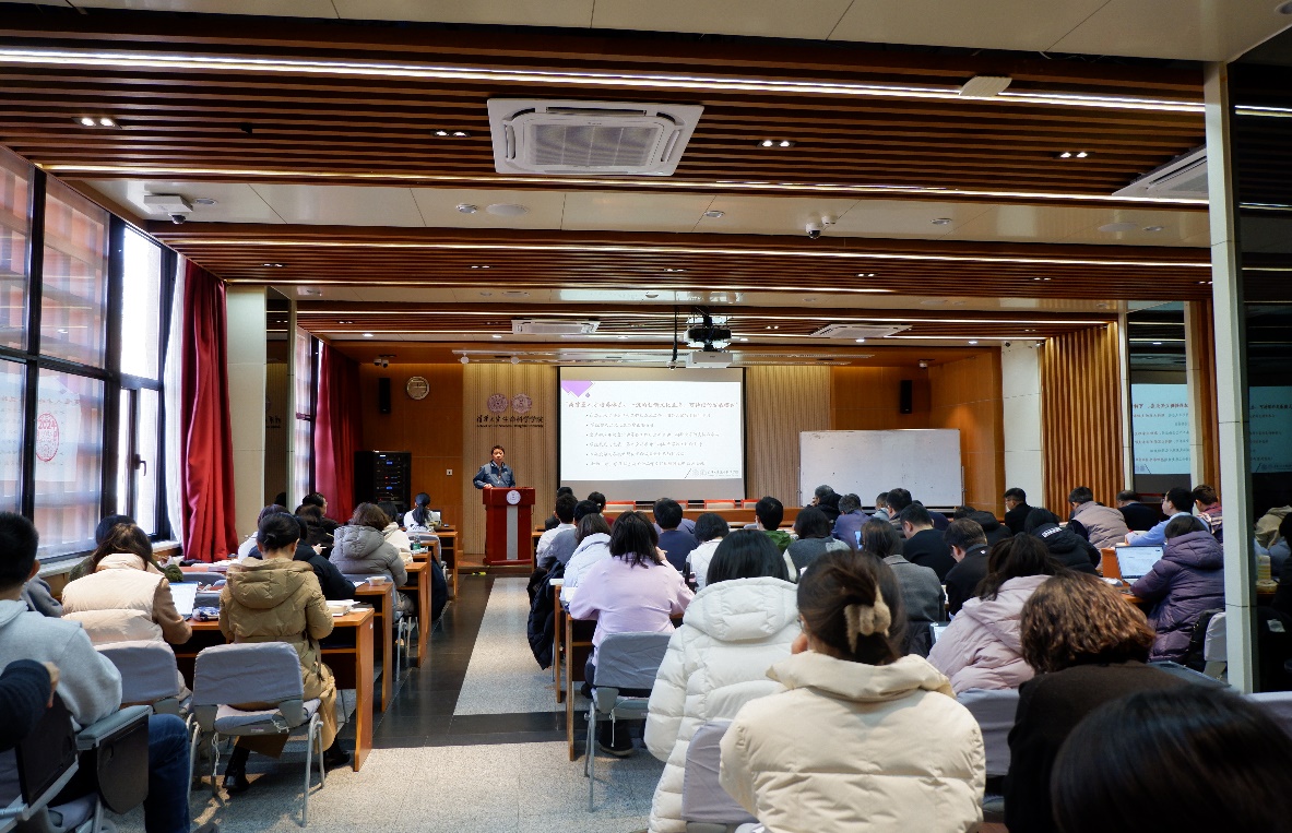 时松海首先发言,指出学院未来发展将围绕“高质量人才培养体系、一流的创新文化生态、可持续的发展模式”这三个中心工作,并逐一简要介绍了与之相关的高层次人才培养中心情况、学院拟建立文化生态建设委员会的设想以及学院校友与发展工作的情况。2024年是生物系复系40周年,学院将依托复系40周年这一重要节点推出一系列纪念活动,为师生、校友提供多层次、多角度、有温度的交流平台。他最后重点强调了学院要筑牢财务与安全防线,警钟长鸣,常抓不懈。