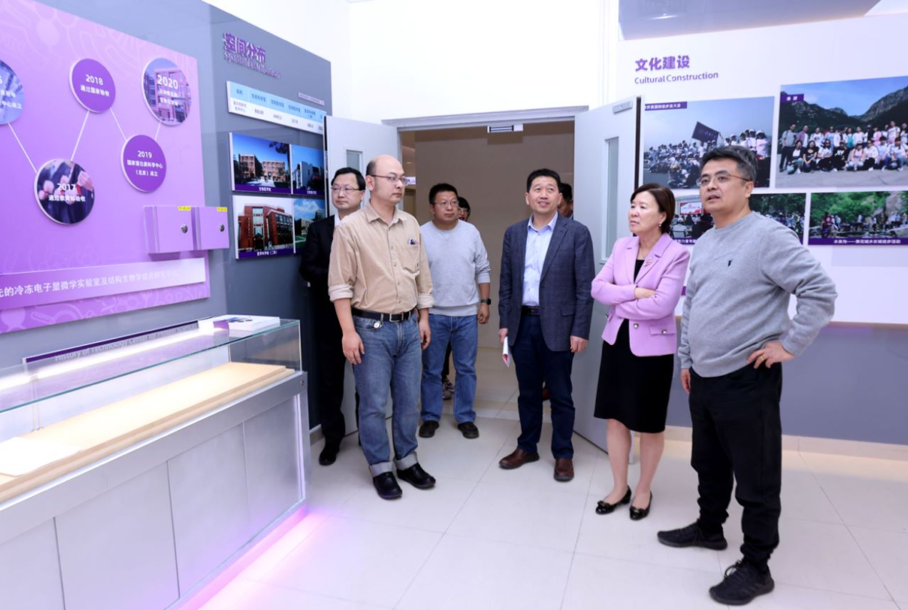 座谈结束后,清华大学蛋白质研究技术中心常务副主任王新泉、生命学科校级平台办公室主任范仕龙陪同叶玉如一行参观蛋白质中心展览室和冷冻电镜平台,并就中心运行与设备管理等方面展开交流。
