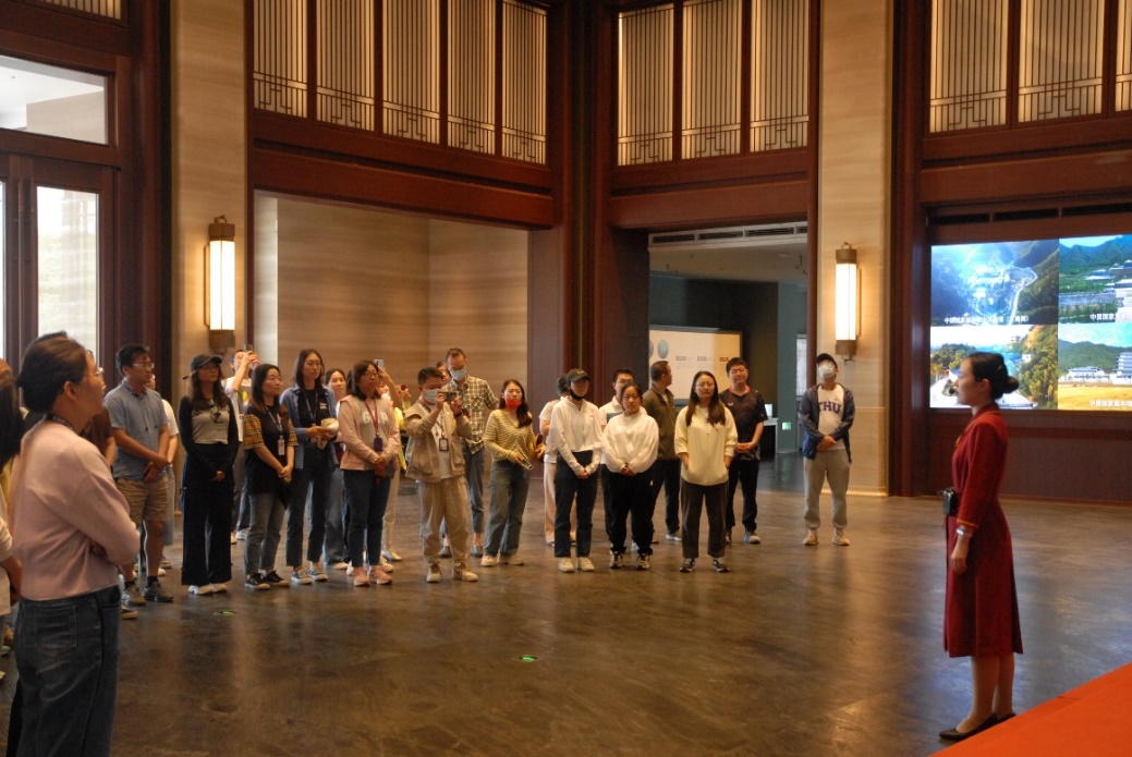 跟随中央总馆讲解员,师生们逐一参观了文兴楼、文华堂、文瀚阁三大主体建筑。在讲解过程中,大家还就总馆的藏品数量、珍稀程度、文学史料价值等问题与讲解员展开交流。国家之魂,文以化之,文以铸之。典籍版本,蕴含着中华民族的智慧、精神、文化,更蕴含着生生不息的力量,通过实地参观,大家对“修文藏典”的意义有了更为深入的理解。