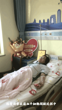 在高分辨配型成功和体检合格后,陈哲在空军特色医学中心正式进行造血干细胞捐献。整个过程宛如生命于轮回中再造重生,足足持续4个多小时,共循环12000多mL血。