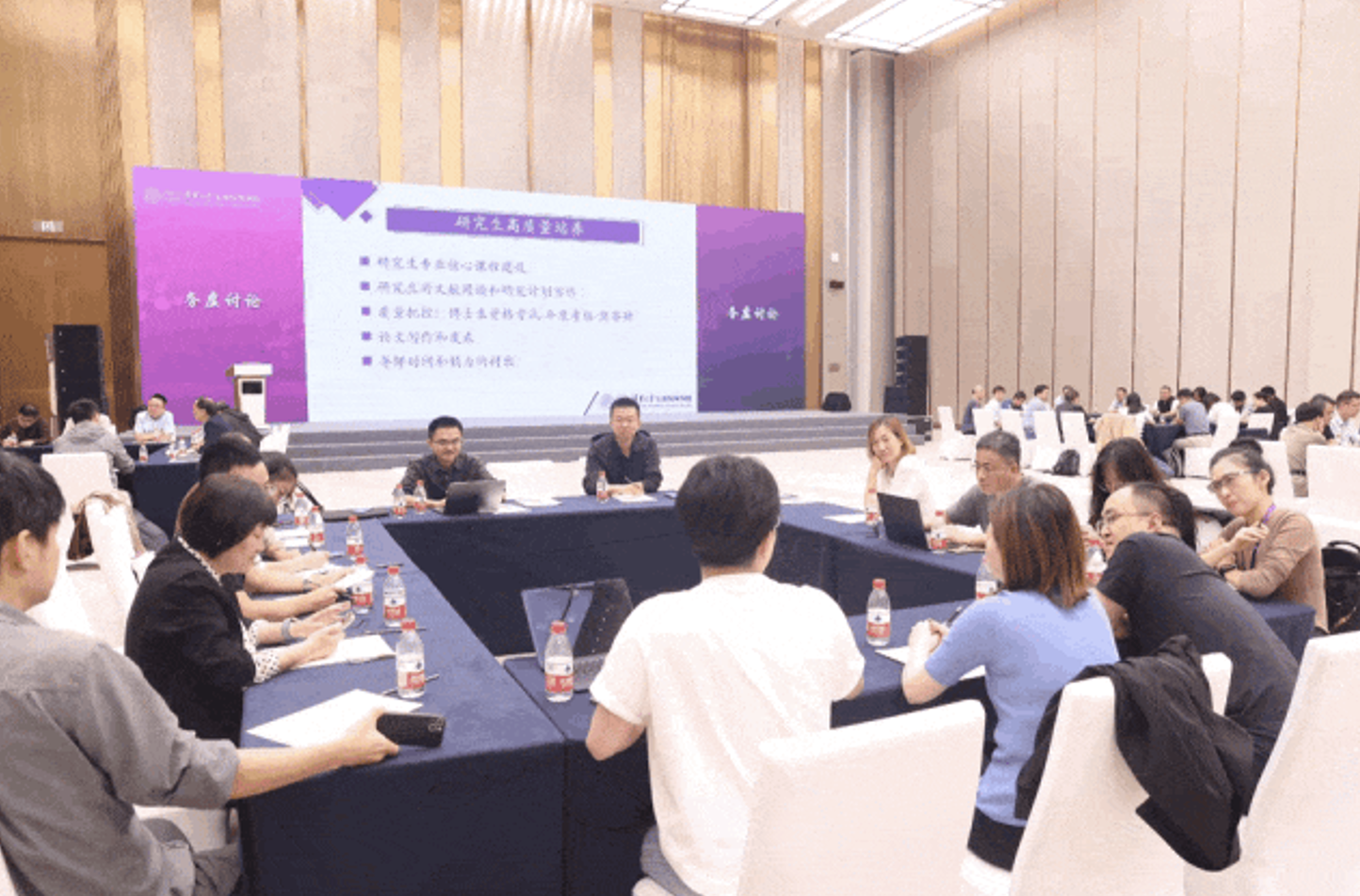 欧光朔作为“研究生高质量培养”议题组长发言,他总结讨论并提出,要强调全员育人的重要性,建议校级平台的老师们积极参与育人过程,避免教育环节的脱节;建议组织平台老师轮转,将顶尖技术资源转化为教育资源;建议针对学生定导后的培养作系统化体系建设,集中集体力量打造优质课程和培养范式。另外,讨论还指出研究生质量的关键在于招生环节,招收的学生应具备对科学的真挚热爱和对科研的自信。在质量控制方面,参会老师一致认为,应将质量视为底线,并对学生实施严格和统一的要求,确保研究生培养的高质量发展。