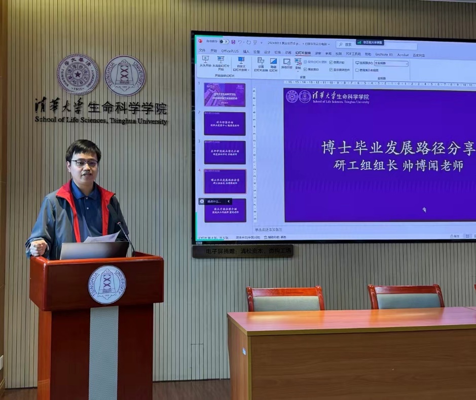 帅博闻结合自身毕业前后的求职经历和心路历程,与大家分享了公共部门的求职政策和学校的相关资源。作为今年新入职的一员,他向大家讲述了自己的求职历程,以及选择入职的契机,同时他也向大家介绍了除科研岗位以外,生命学院毕业生可以考察和选择的就业方向和地区,鼓励大家开拓视野、积极准备。帅博闻还向大家介绍了学院的就业信息发布和咨询的渠道,鼓励大家充分利用学院提供的平台和机会,到不同领域和地区进行走访实践,找寻心仪的工作。