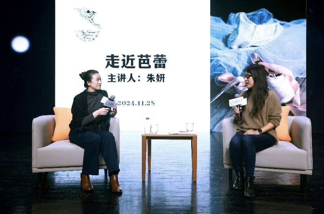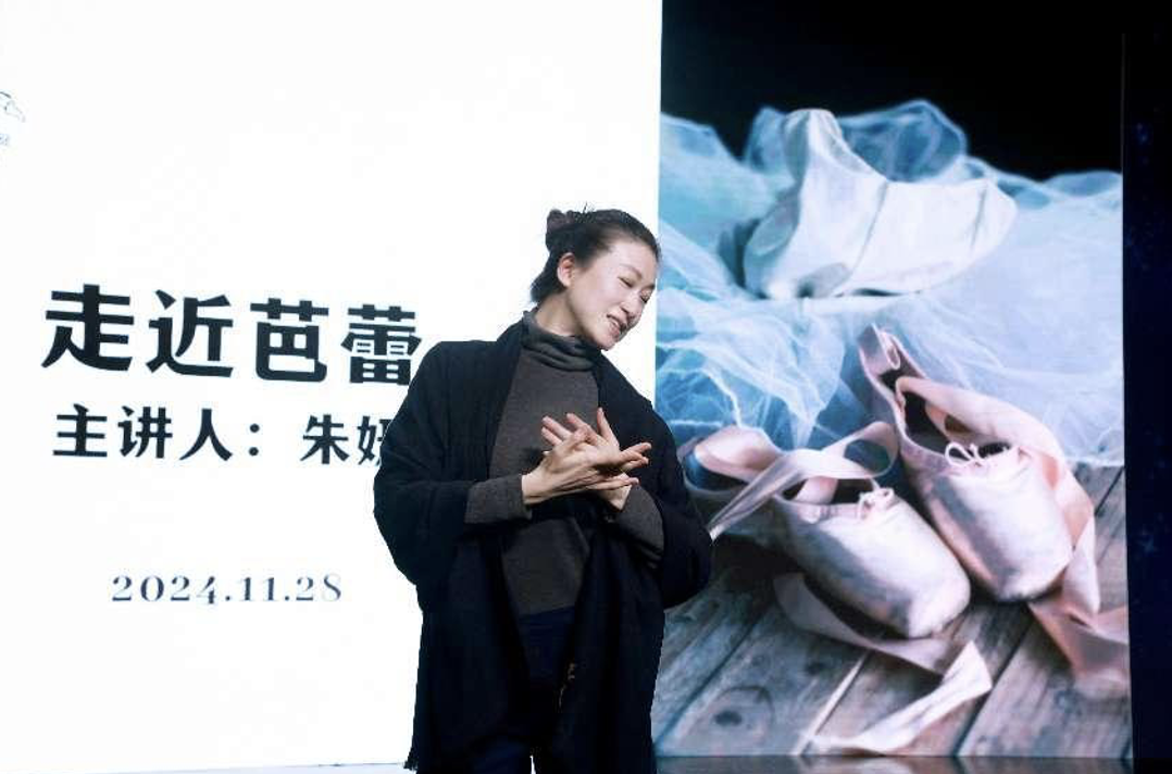 报告环节中,朱妍老师通过短片展示了自己从舞蹈启蒙到职业成长的历程,同时介绍了芭蕾舞的多种形式,如古典芭蕾、新古典芭蕾和现代芭蕾。她为观众讲解了芭蕾舞演员的选“才”标准,包括“三长一小”、开度、软度和弹跳能力等。这些细节不仅体现了芭蕾的艺术审美,更凸显了其对演员自身素质的严苛要求。