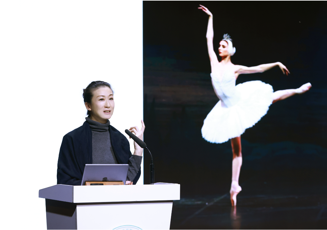 11月28日下午,生命科学学院·院长杰出讲坛迎来首位艺术嘉宾——国家一级演员、国务院政府特殊津贴专家、第十二、十三届全国政协委员、中央芭蕾舞团副团长朱妍老师,朱老师以“走近芭蕾”为题作了精彩的报告。报告中,朱老师以其深厚的艺术造诣和丰富的舞台经历讲述了芭蕾的起源、发展历史和芭蕾舞者的成长之路,并与在场的观众分享了她对芭蕾艺术的深刻见解和个人感悟。报告会由生命学院院长时松海主持。