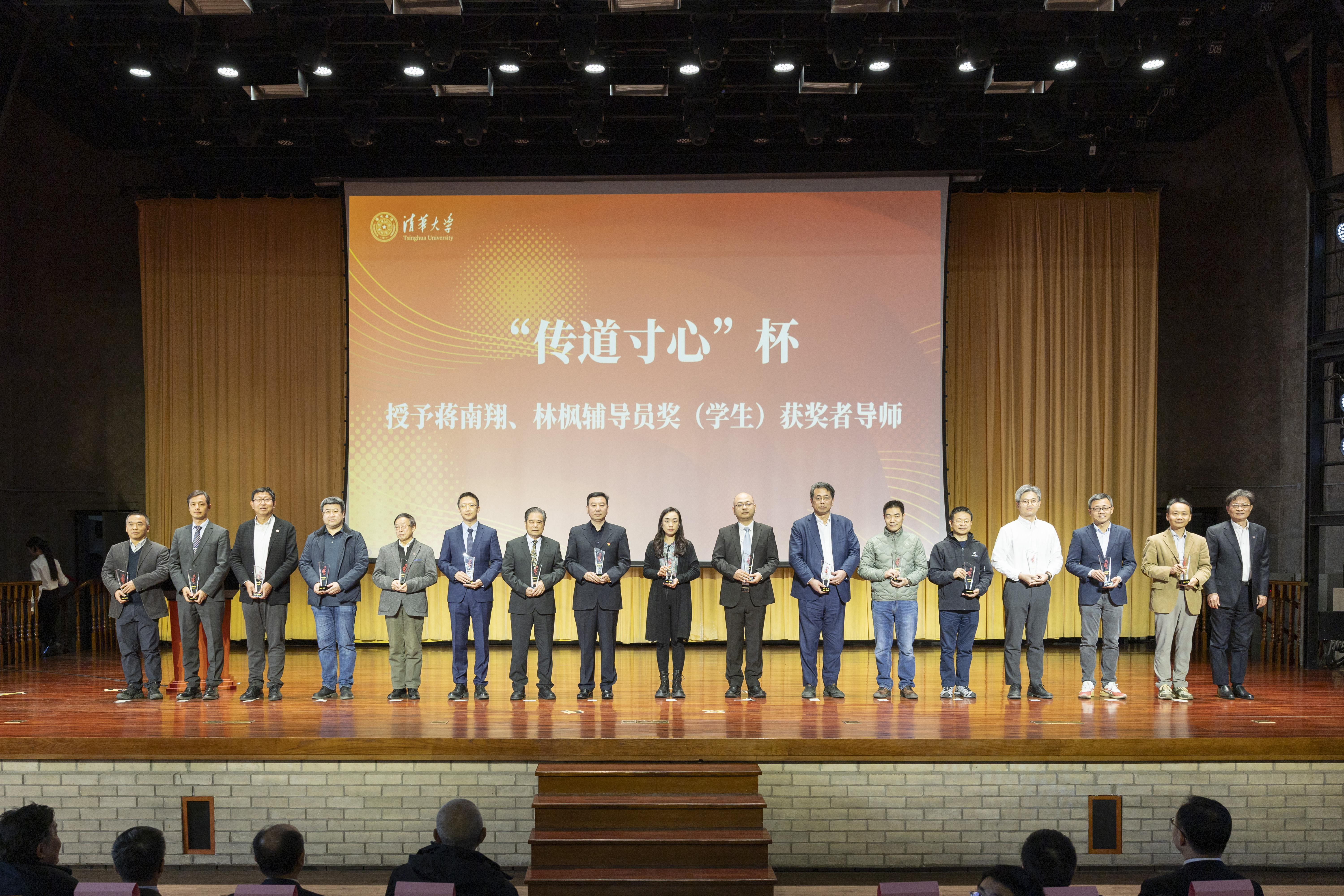 “传道寸心”奖颁发给学生身份林枫辅导员奖获得者的导师,以表彰他们对辅导员工作的关心和支持,其中繁体的“道”字(導)寓意辅导员和导师都是用心传道的“导”,“传道千古事,得失寸心知”。