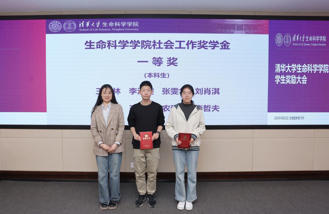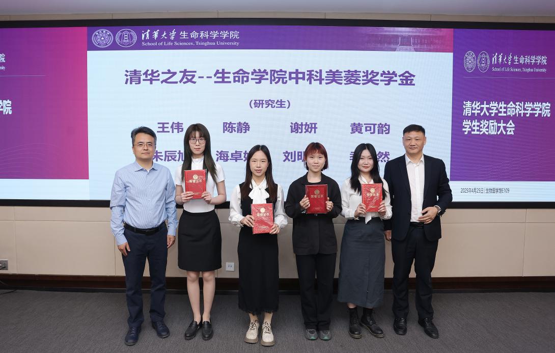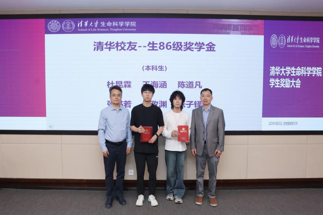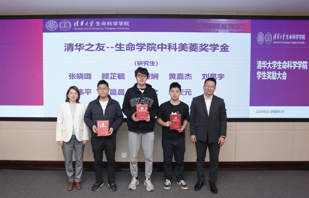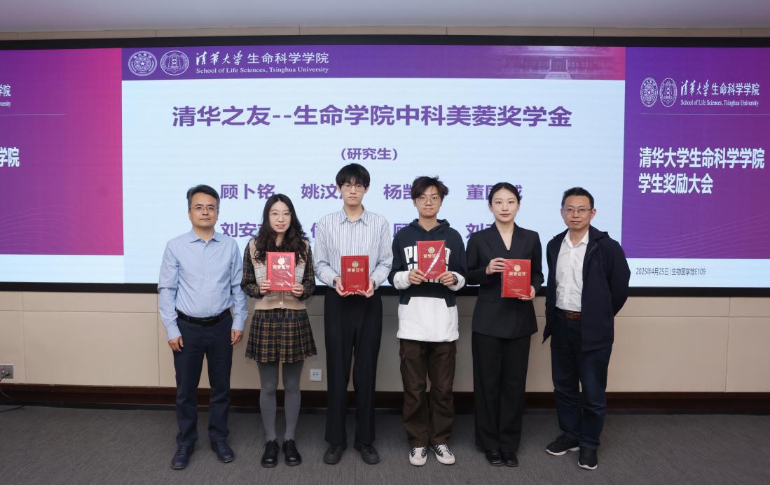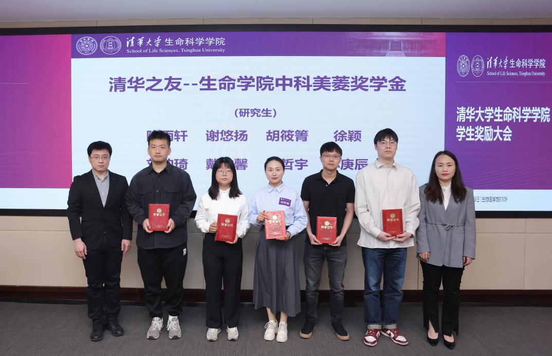 4月25日上午,清华大学生命科学学院2024年学生奖励大会在生物医学馆E109会议室举行。奖学金捐赠方代表——生物系1986级校友代表曾荣,清华大学生物系1999级校友、上海巅石知识产权代理事务所联合创始人魏国柱,生物系2004级博士校友、浙江清松投资管理有限公司创始人兼CEO张松、副总裁杨雪郝晶,中科美菱低温科技股份有限公司代表方荣新、向东、潘海云等受邀出席大会。生命学院党委书记王新泉,党委副书记李鹏,院长助理、校友与发展办公室主任钱文丽,院长助理、研究生工作组组长张伟,学生工作组组长郭冰敏,研究生事务教师董园等多位老师共同见证了90名同学获得表彰。
