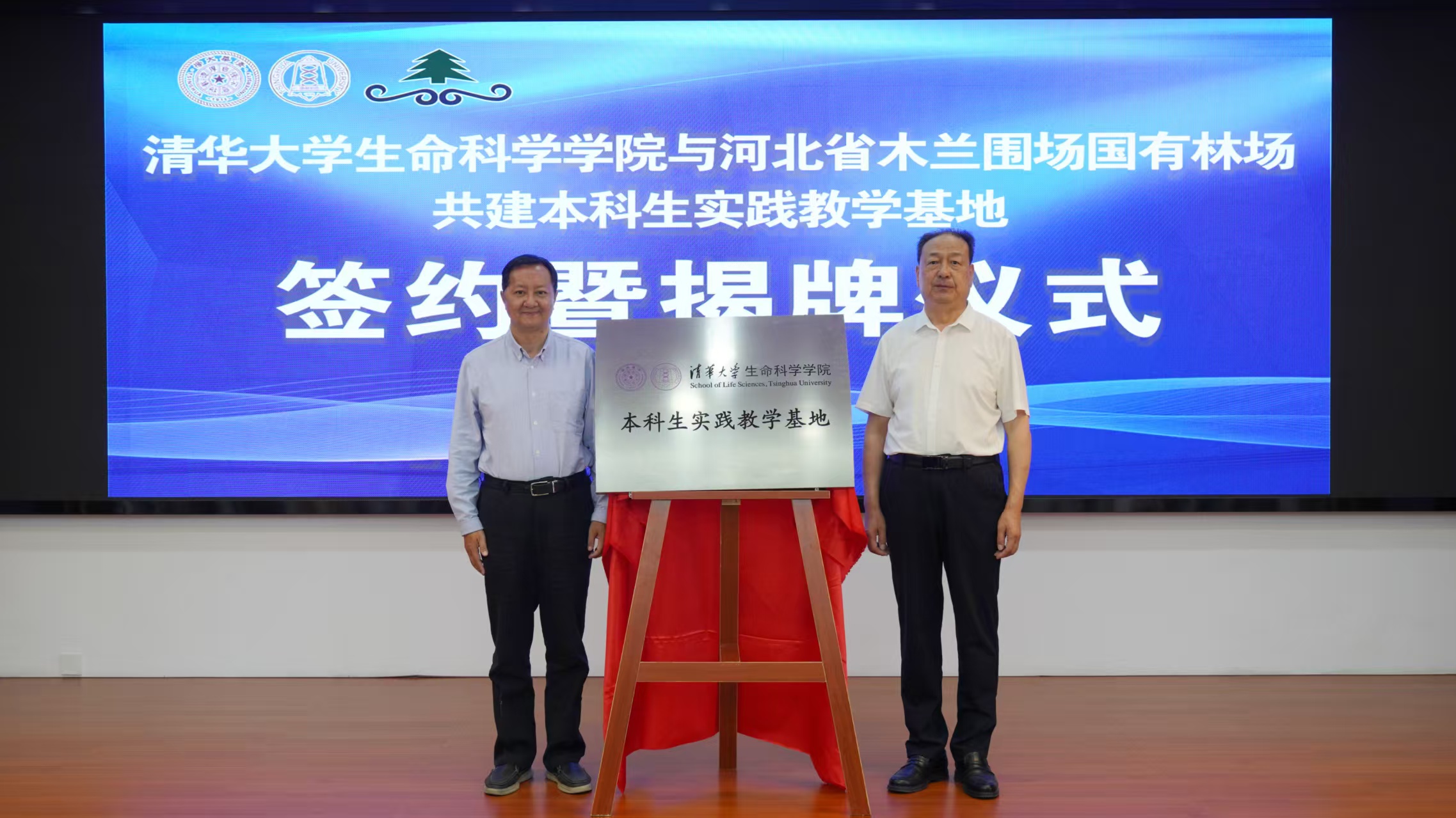 仪式中,刘栋与曹运强同志代表双方签订了合作协议,并为“清华大学生命科学学院本科生实践教学基地”揭牌。