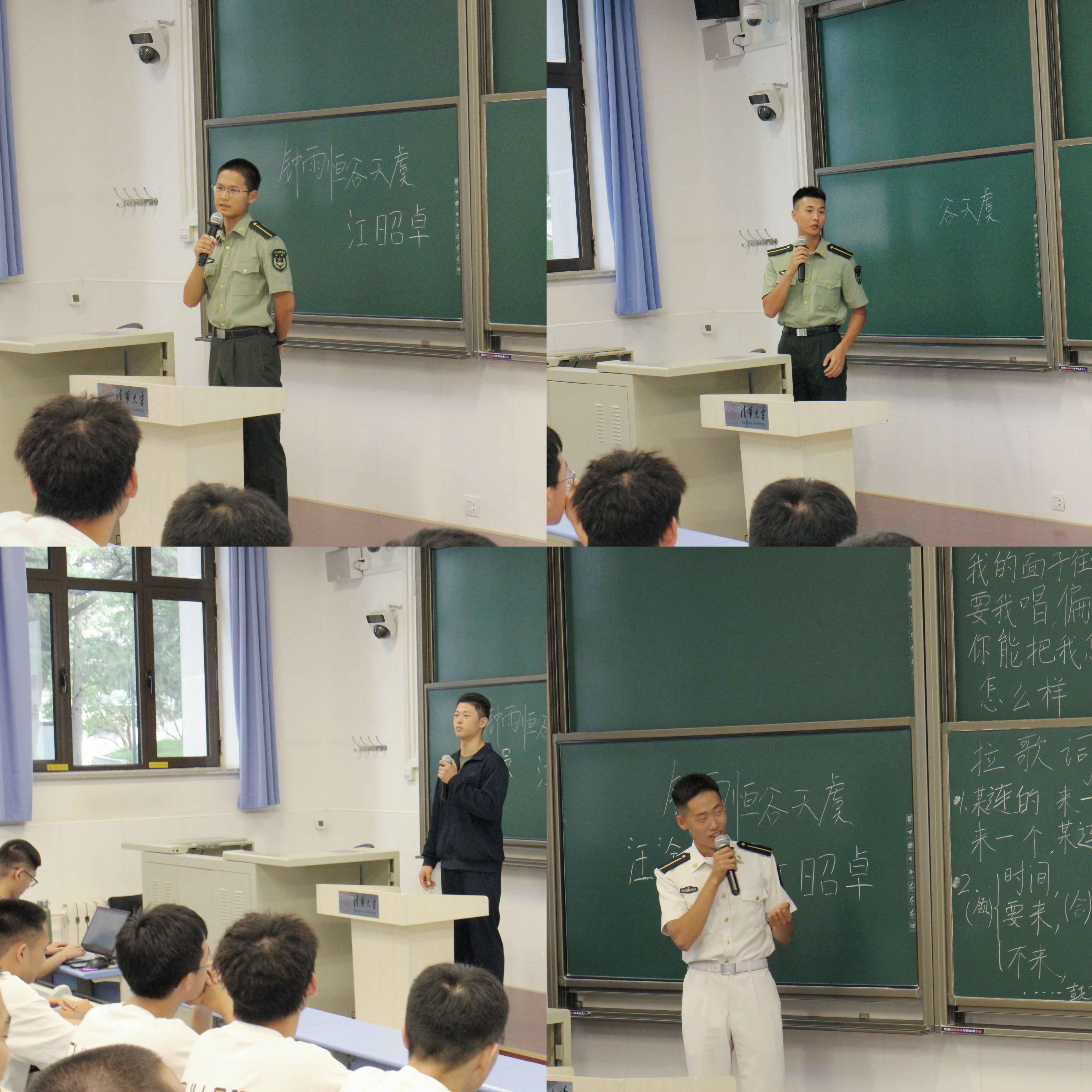 随后,四位承训教官集体亮相,与同学们见面并作动员讲话。连长兼一排长谷天虞在纪律、效率与安全三个方面提出明确要求,希望同学们以军人的标准严格要求自己,在保障安全的前提下全力以赴完成训练任务,锤炼意志品质。二排长钟雨恒表达了对同学们顺利完成军训的信心,叮嘱大家听从指挥、充分准备,以出色表现交出圆满答卷。三排长江昭卓鼓励同学们保持自信、积极配合,在军训中收获成长与蜕变。四排长汪淦员希望同学们认真学习军人作风,保持乐观向上、勇于拼搏的精神,通过军训磨砺品格、提升自我。