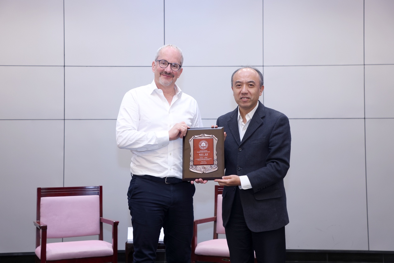 王宏伟向安东尼·海曼赠送清华海外名师讲堂纪念牌