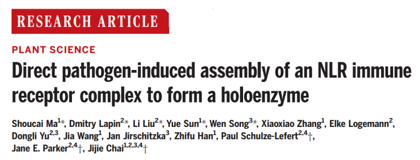 This study was published online in Science on December 4th, 2020, entitled “Direct pathogen-induced Assembly of an NLR immune receptor Complex to Form a Holoenzyme”. At the same time, a perspective on the paper was also published in Science in the same issue.