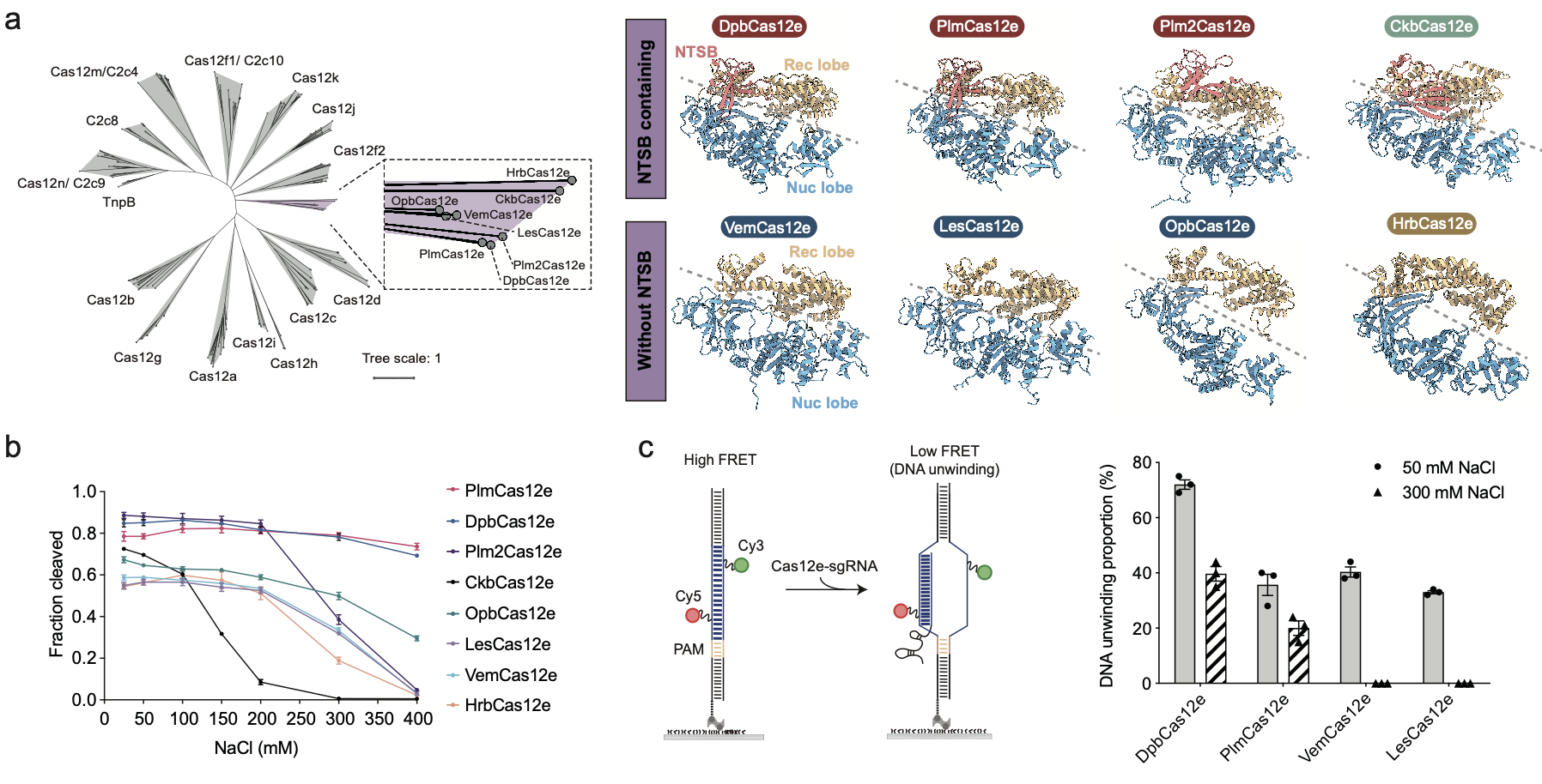 Figure 1 . Structural and biochemical activity of novel CRISPR-Cas12e systems